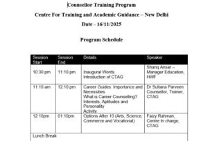 At CTAG, we are committed to empowering students from socio-economically weaker sections by making career counselling and guidance accessible to all. As a non-profit initiative of the Human Welfare Foundation under Vision 2026, our mission is to help students choose careers that align with their interests, personality, and aptitude. Our culturally sensitive assessments focus on the unique needs of students from North India. We also offer free training for individuals who aspire to become career guides in their communities, building a nationwide network dedicated to promoting career awareness and informed academic choices.