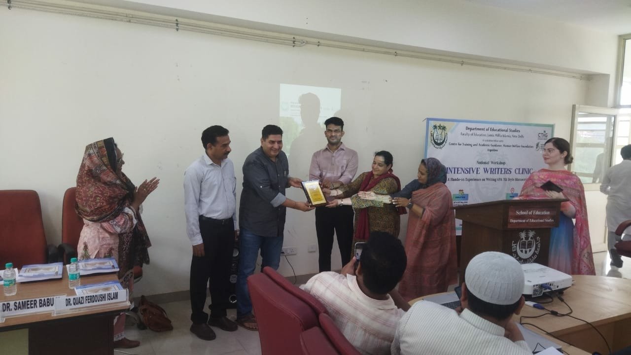 The Department of Educational Studies (DES), Faculty of Education, Jamia Millia Islamia (JMI), in partnership with Centre for Training and Academic Guidance (CTAG) of the Human Welfare Foundation (HWF), hosted a three-day National Intensive Writers’ Clinic (NIWC). The clinic, held at the School of Education Building, sought to help emerging scholars improve their academic writing skills by focussing on APA 7th Edition rules.
